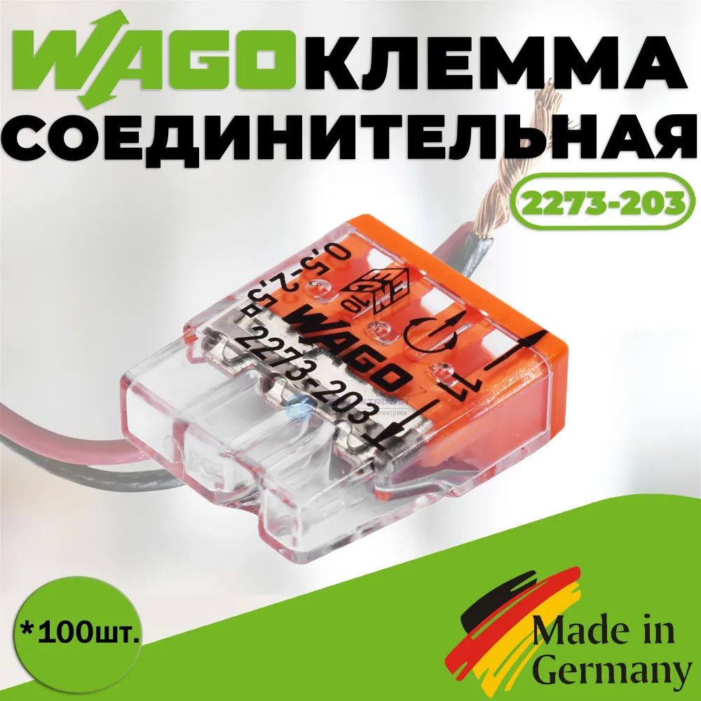 Обеспечьте надежное и безопасное соединение проводов с клеммами "WAGO" моделей 2273-203 и 2243-204. Эти клеммы предназначены для быстрого и удобного монтажа, что делает их идеальным выбором как для профессионалов, так и для домашних мастеров.