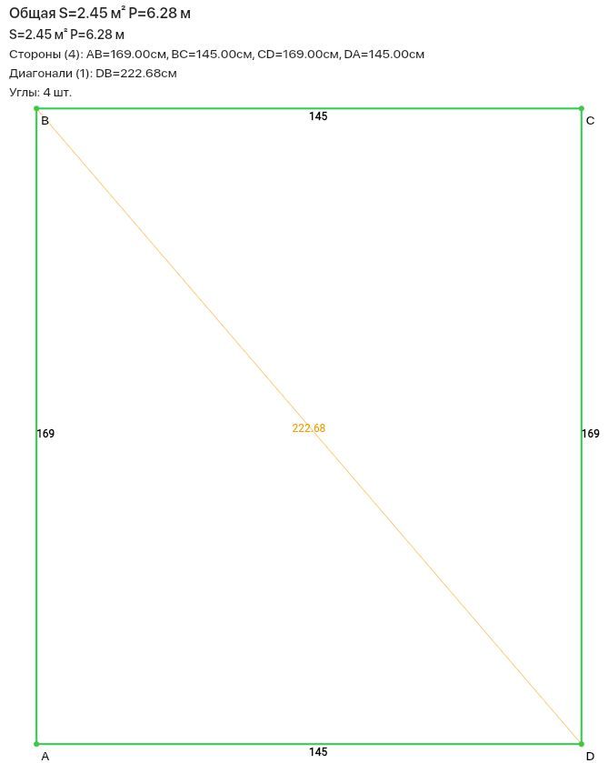 - периметр полотна: 7 м;