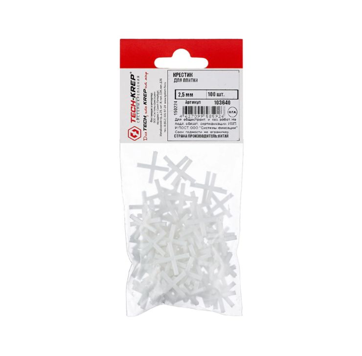 Крестики Tech-KREP применяются при обустройстве плиточной облицовки для выполнения ровных межплиточных швов и корректировки положения плит.
