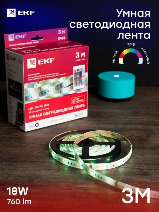 Управление лентой осуществляется с помощью пульта дистанционного управления или со смартфона через приложение EKF Connect. Это позволяет легко и быстро изменять настройки освещения и создавать уникальные световые сценарии.