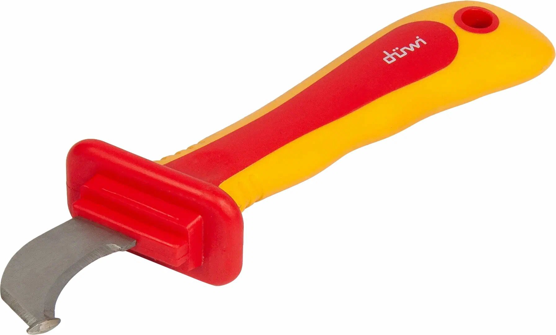 Нож монтерский с пяткой Duwi Profi 26130 8 используется при проведении электромонтажных работ. Применяется для снятия изоляции с кабелей и проводов. Основная часть обладает диэлектрическим покрытием, сделана из стали, отличающейся прочностью и долговечностью, устойчивостью к коррозии. Конструкция не складная.