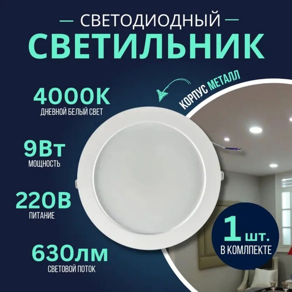 Светильник изготовлен из высококачественных материалов, таких как пластик и металл, что обеспечивает его долговечность и надежность. Благодаря уникальному драйверу, светильник обеспечивает стабильную работу при перепадах напряжения.Мощность светильника составляет 9 Вт, а световой поток - 630 Лм. Это делает его оптимальным выбором для небольших помещений, обеспечивая яркий и комфортный свет без пульсации, что важно для здоровья глаз.
