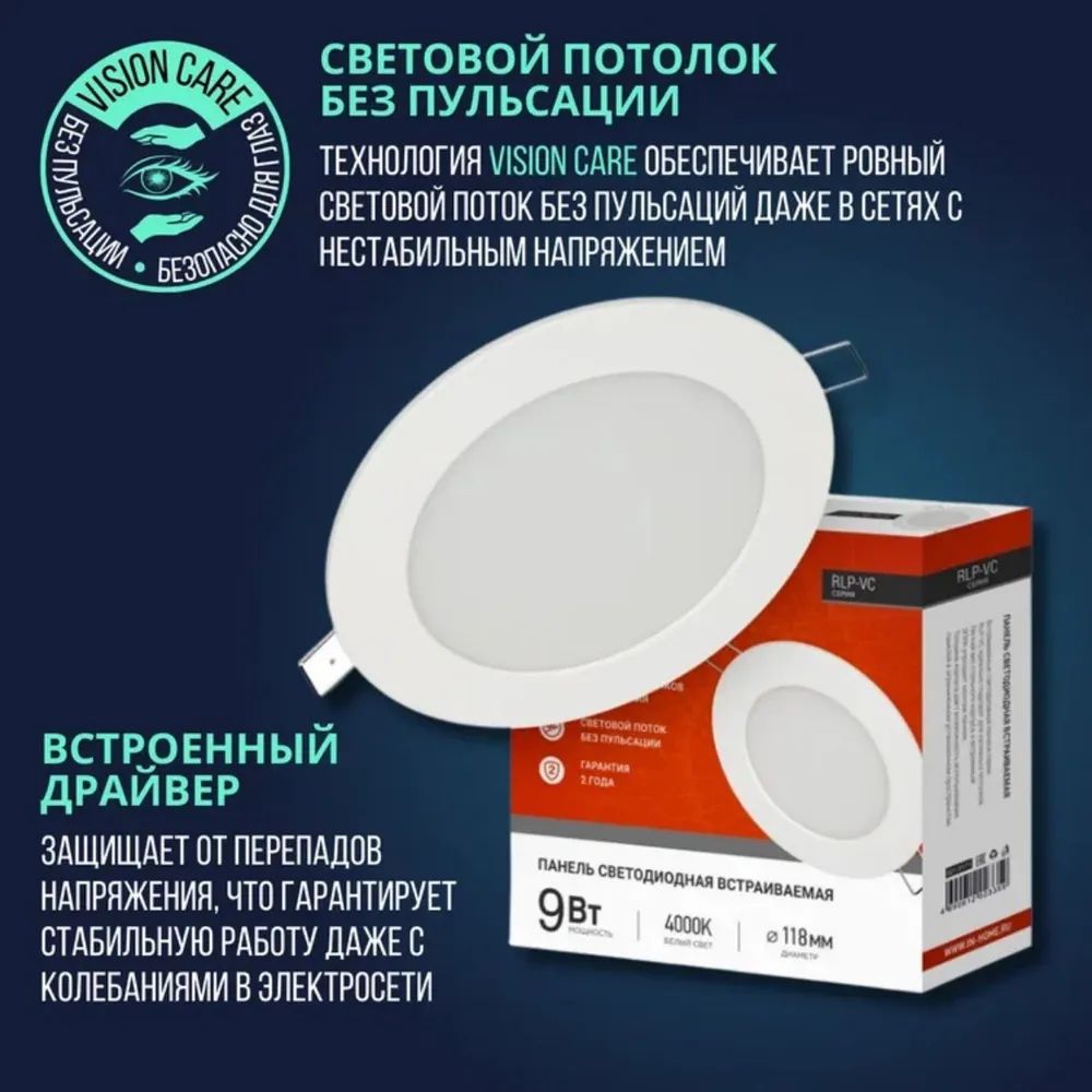 Светильник IN HOME "Панель светодиодная встраиваемая" - это ультрасовременный и стильный светильник, который станет отличным решением для создания уютной и комфортной атмосферы в доме, офисе или любом другом помещении.
