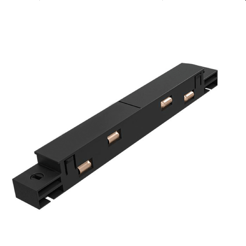 Прямой коннектор Vaes VECTOR чёрного цвета — аксессуар для магнитной трековой системы, предназначенный для прямого соединения отдельных сегментов трека в единую линию. Обеспечивает надёжную механическую фиксацию и стабильное электрическое соединение.