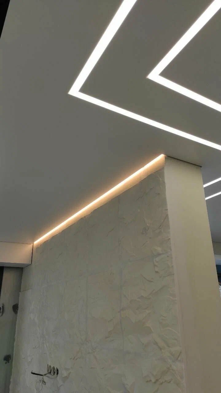 Этот профиль идеально подходит для создания световых линий в натяжных потолках, добавляя современный акцент в интерьер вашего дома или офиса.